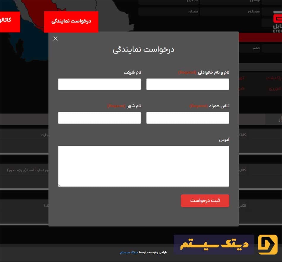 نرمافزار امکان ارسال درخواست نمایندگی را بهراحتی فراهم کرده است. کاربران میتوانند از طریق فرم تعبیهشده درخواست خود را ارسال کرده و اطلاعات لازم برای درخواست نمایندگی را وارد کنند. این ویژگی بهویژه برای افرادی که قصد دارند به عنوان نماینده جدید با شرکت اعتماد کابل همکاری کنند، بسیار مفید است.